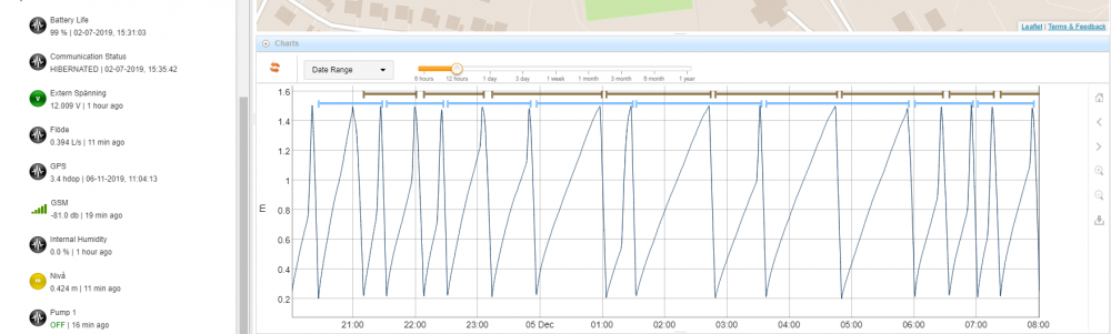 Vid mätningar av pumpstationer i Stockholm har vår samarbetspartner ELiVA kunnat konstatera förslitning i en pump. Jämförande mätning visade tydligt att en av två pumpar inte hade samma effekt, den var helt enkelt sliten och behövdes renoveras/bytas ut. Genom att visualisera sumpnivå, start och stopp för pumparna samt flöde ut kunde avvikelsen lätt konstateras.