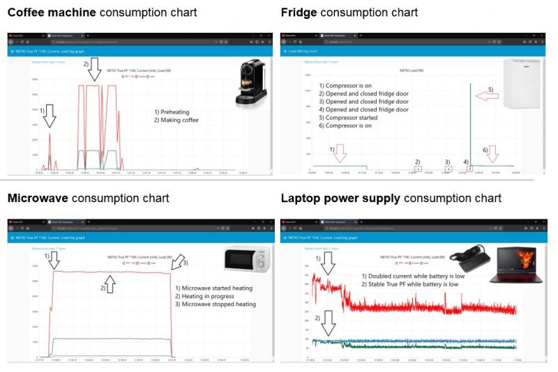 Nedan kan du se exempel på energiförbrukning hos fyra hushållsapparater. Avviker TruePF från det normala är detta en indikation på att något är fel i den anslutna apparaten.