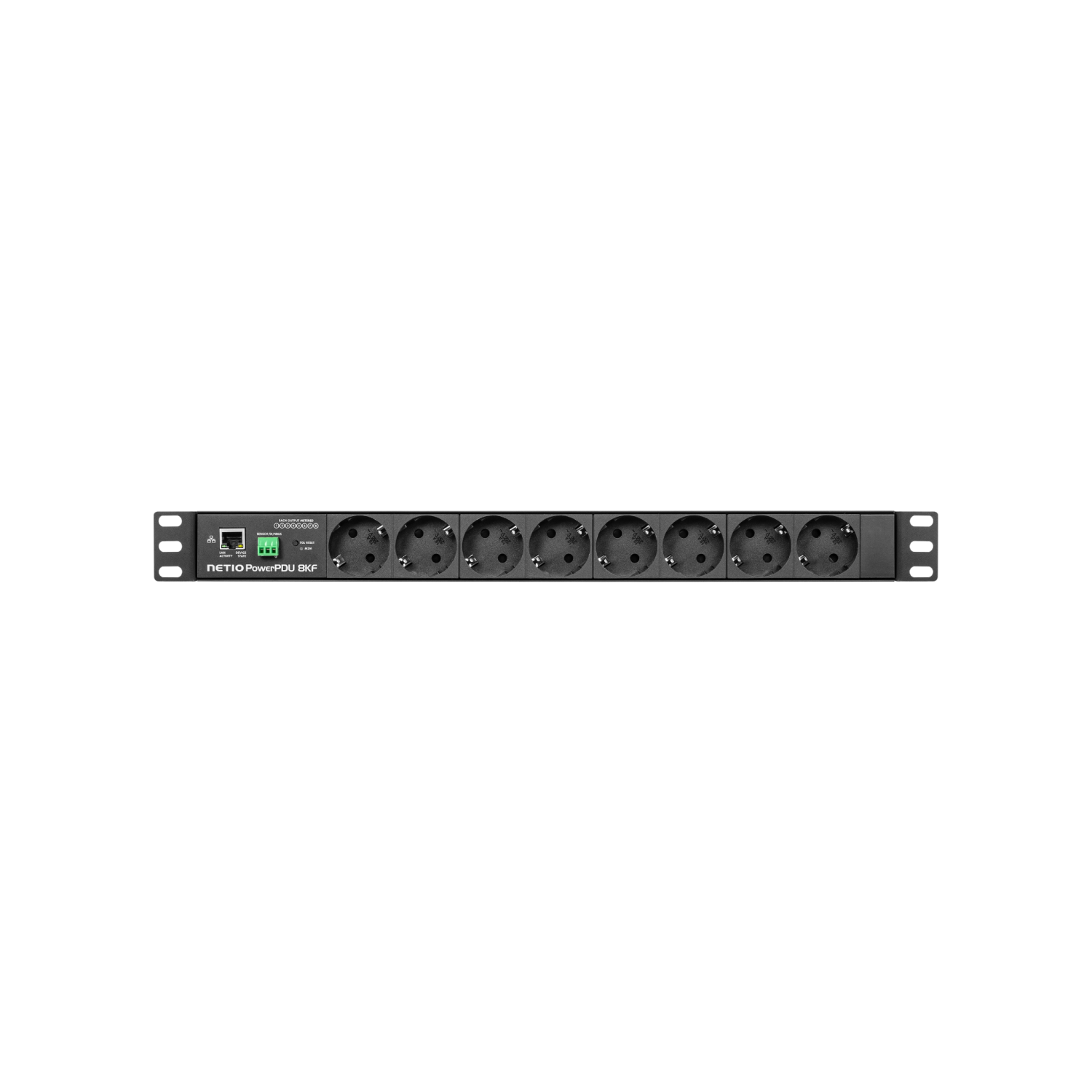 PowerPDU 8KF är en PDU (strömfördelare) med åtta utgångar som styrs via ett LAN-nätverk. Den är byggd för 19”-rack och monteras horisontellt eller vertikalt. Varje utgång kan övervakas och styras individuellt och oberoende av varandra.