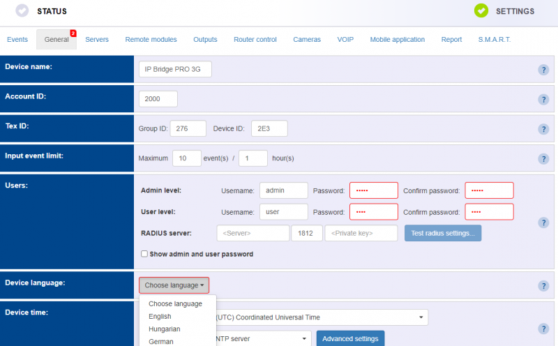 Därefter bör du kunna ändra användarnamn och lösenord utan problem. Ange de inställningar du vill och och klicka SAVE, tänk på att användarnamn och lösen för user och admin måste vara olika. Det underlättar om man klickar i "Show admin & user password" så man ser lösenorden i klartext.