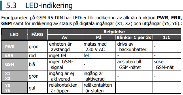 GSM-R5-DINB - Hur tolkar jag lysdioderna