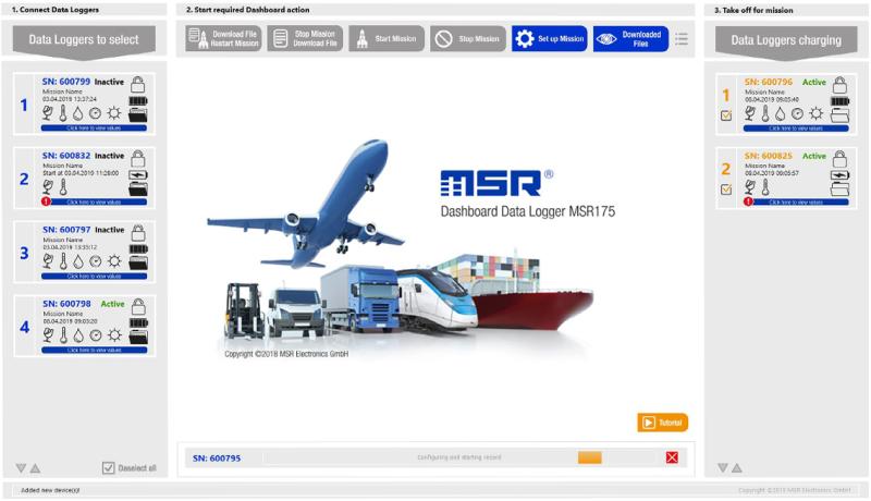 MSR175 används med tre program: MSR Dashboard, MSR ReportGenerator och MSR ShockViewer. Med MSR Dashboard kan loggern konfigureras med några få klick. Insamlad data kan snabbt överföras till en dator via USB-porten, och en kompakt rapport genereras enkelt via MSR ReportGenerator. För en mer detaljerad analys finns MSR ShockViewer, som ingår kostnadsfritt i programvarupaketet.
