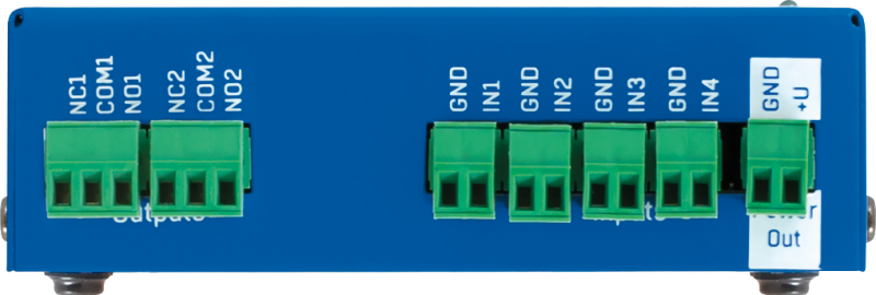 - 2 st reläutgångar som kan styras manuellt i webbgränssnitt eller Sensdesk, utifrån villkor för sensorer eller digitala in eller från virtuella utgångar i annan enhet.