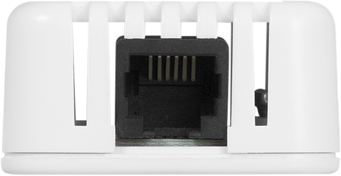 Husen är i en liten elegant plastlåda och sensorn kan monteras på en vägg, i taket eller placeras på ett skrivbord. Den är liten och lätt, så den kan fästas på plats med dubbelhäftande tejp. En avtagbar kabel med RJ11-kontakter används för anslutning. Anslutningskabeln på 3 meter ingår i förpackningen.