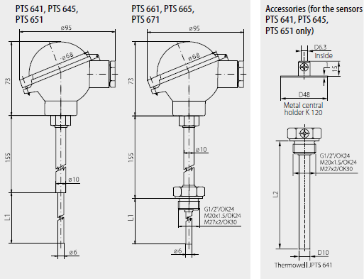 Temperatursensor av instickstyp för temperaturmätning i industriella processer, i rörledningar (med dykrör, se relaterade produkter) eller andra liknande applikationer.