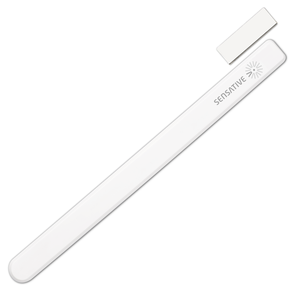 Sensative Strips Multi-sensor +Guard är en ultratunn magnetkontakt (endast 3 mm) som används för att övervaka om dörrar, fönster eller portar är öppna eller stängda. Tack vare sin unika form kan den monteras nästan helt dolt i glipan mellan dörr och karm. Förutom att känna av öppning och stängning har sensorn även en inbyggd temperaturgivare, vilket gör den till en mångsidig lösning för både säkerhet och energibesparing.