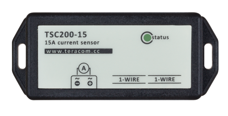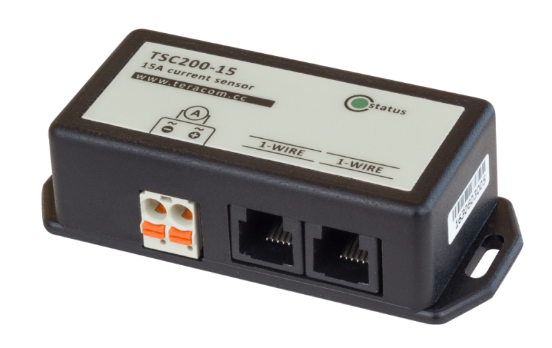 Strömgivare / Signalomvandlare som gör det möjligt att övervaka strömstyrka i intervallet 0,3-15 A AC/DC med en TCW2xx (nätverkstyrning/övervakningsenhet/Ethernet controller). Varje omvandlare har en unik adress som gör det möjligt att ansluta flera till samma 1-wire-buss.