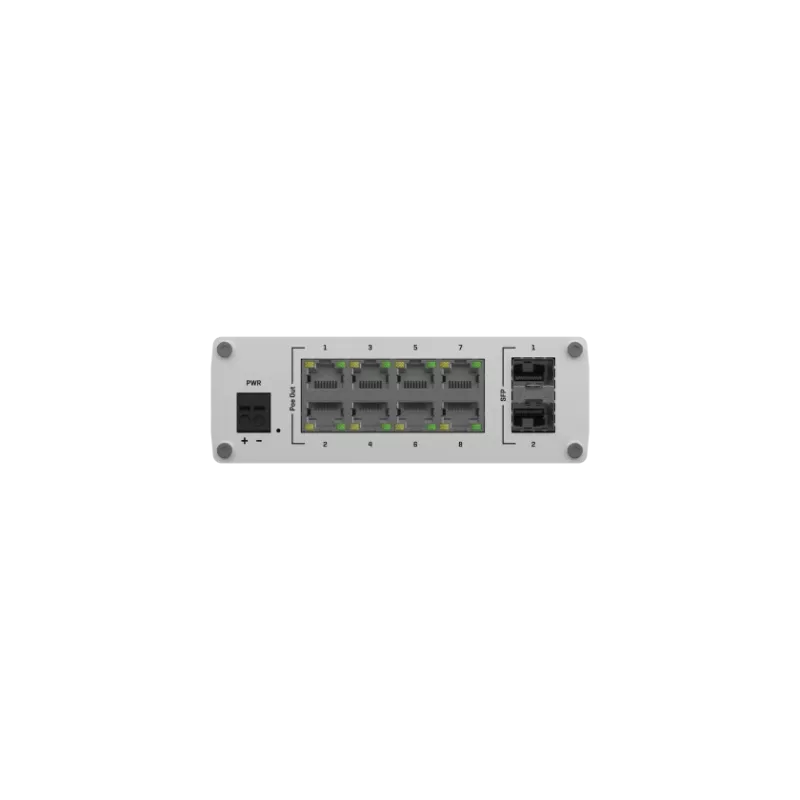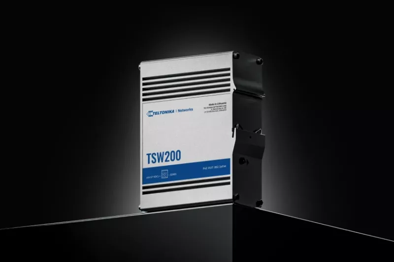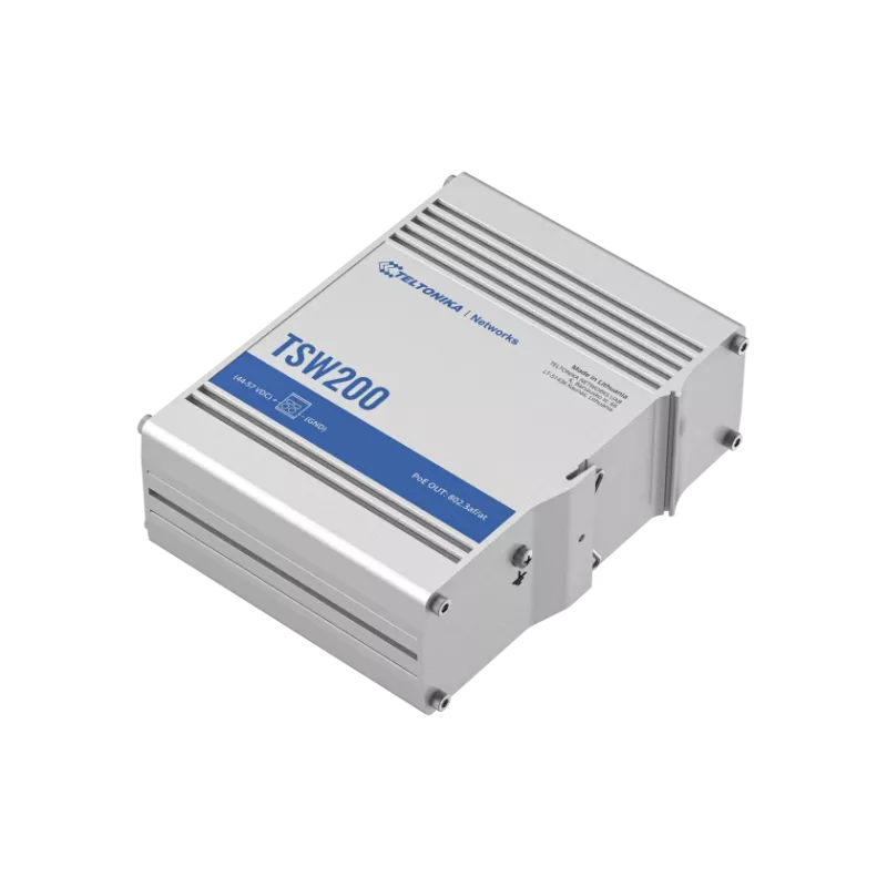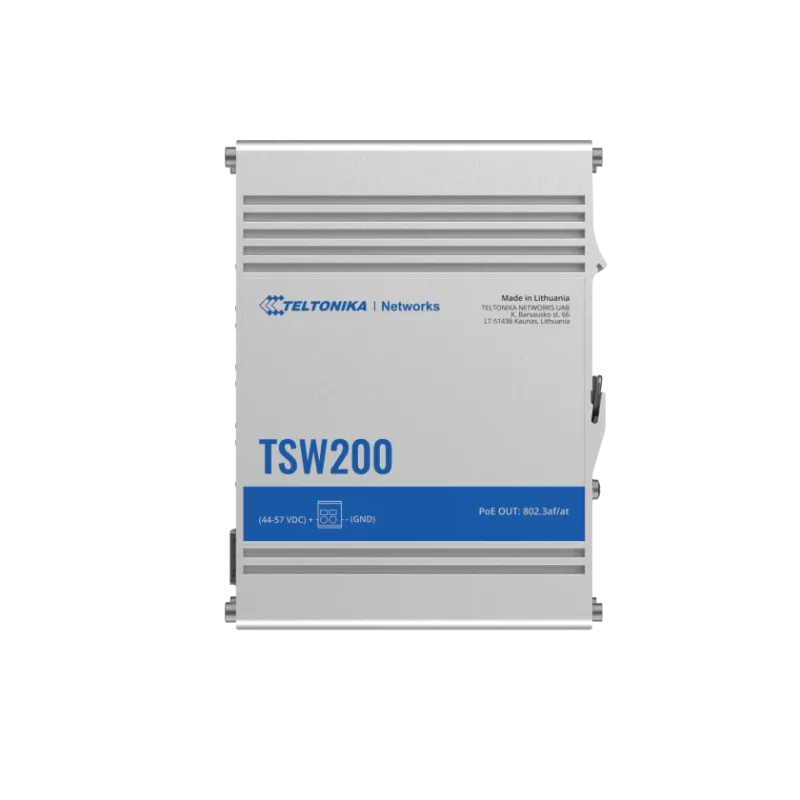 TSW200 är en industriell Ethernet-switch utrustad med två SFP-portar för långdistans fiberoptisk kommunikation och åtta Gigabit Ethernet-portar med stöd för IEEE 802.3af och IEEE 802.3at Power-over-Ethernet-standarder. Som en PSE-enhet (Power Sourcing Equipment) möjliggör den centraliserad strömförsörjning och kan leverera upp till 30 watt per port, vilket förenklar installationen och minskar behovet av separata strömkällor.