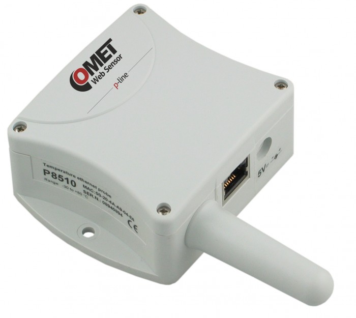 Websensor P8510 är en nätverksansluten termometer för övervakning av temperatur i datahallar, serverrack, lager, industrilokaler, kyl/frysrum, etc.