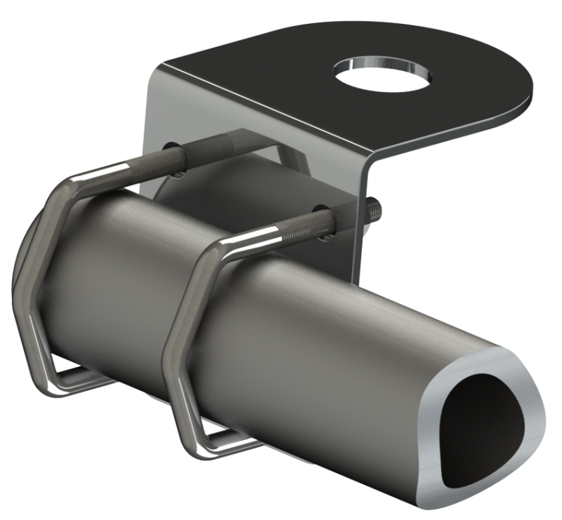 Antennfäste i rostfritt stål för montering på vägg, mast eller reling.